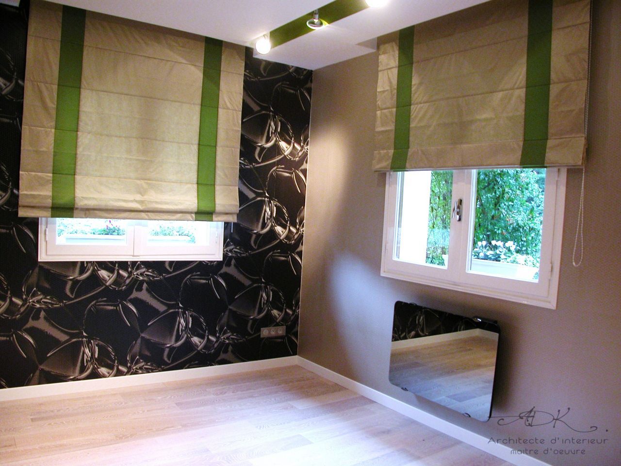 La réponse ADK : choix du papier peint original, mobilier et rideaux coordonnés.