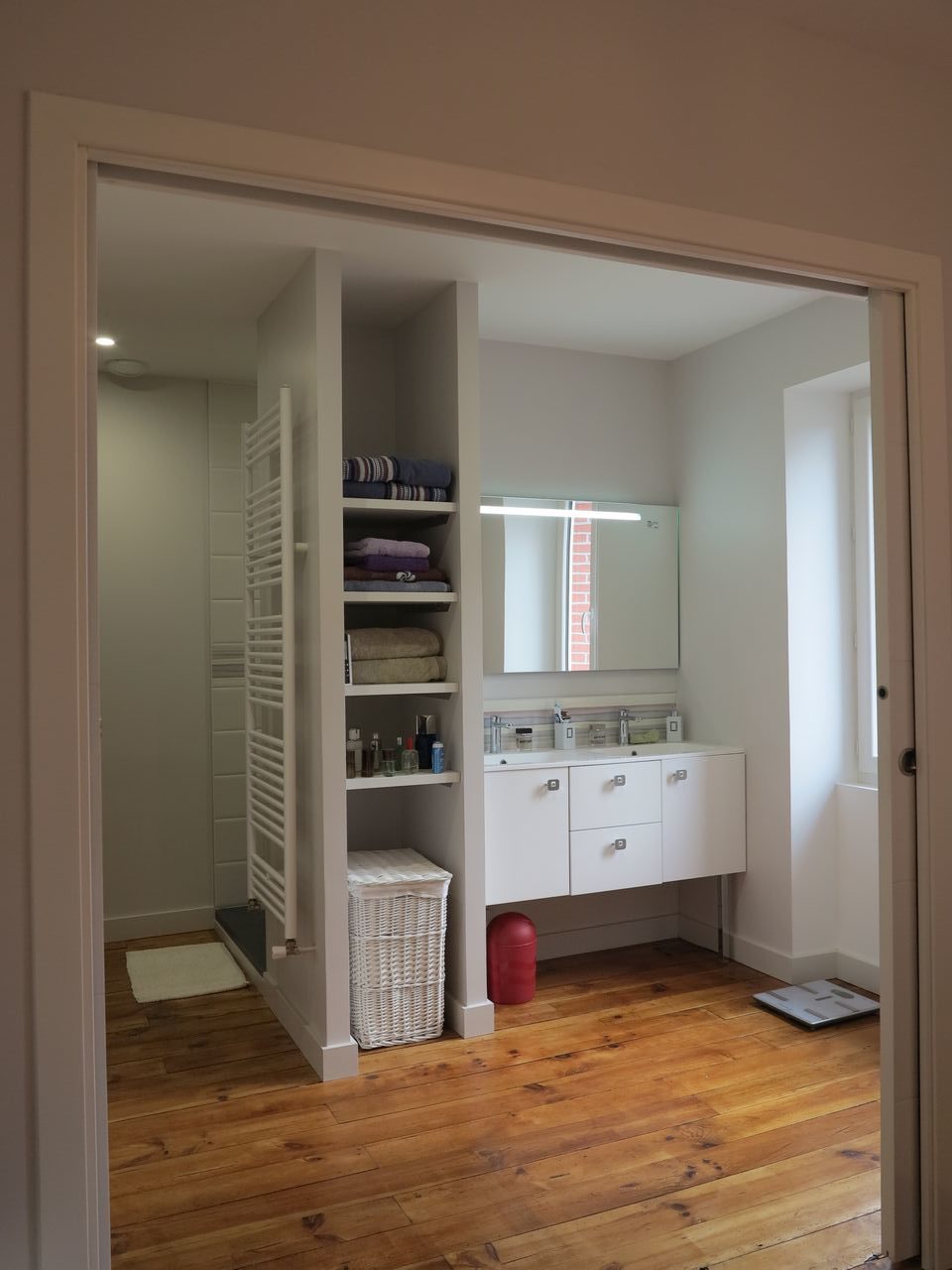 La réponse ADK : Concernant la suite parentale, ADK a créé une suite parentale avec WC séparé, grande douche et dressing sur-mesure. Les parquets ont été conservés et rénovés.