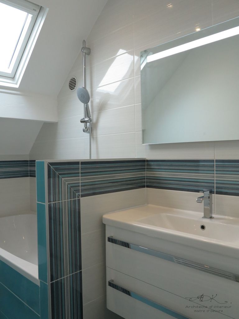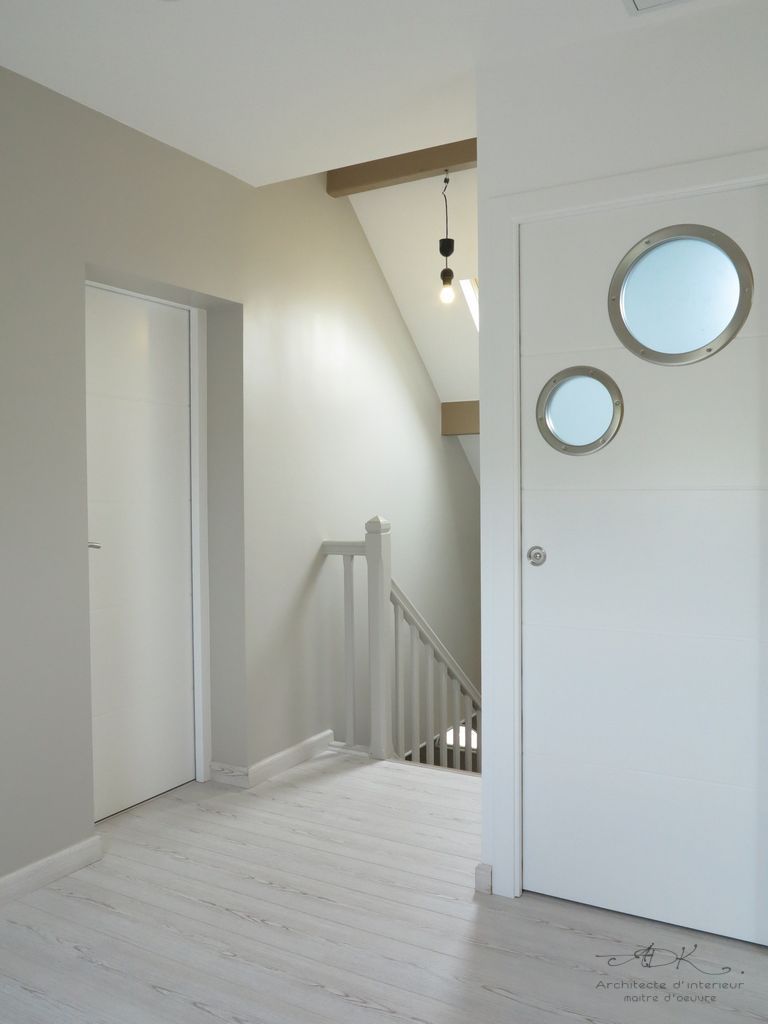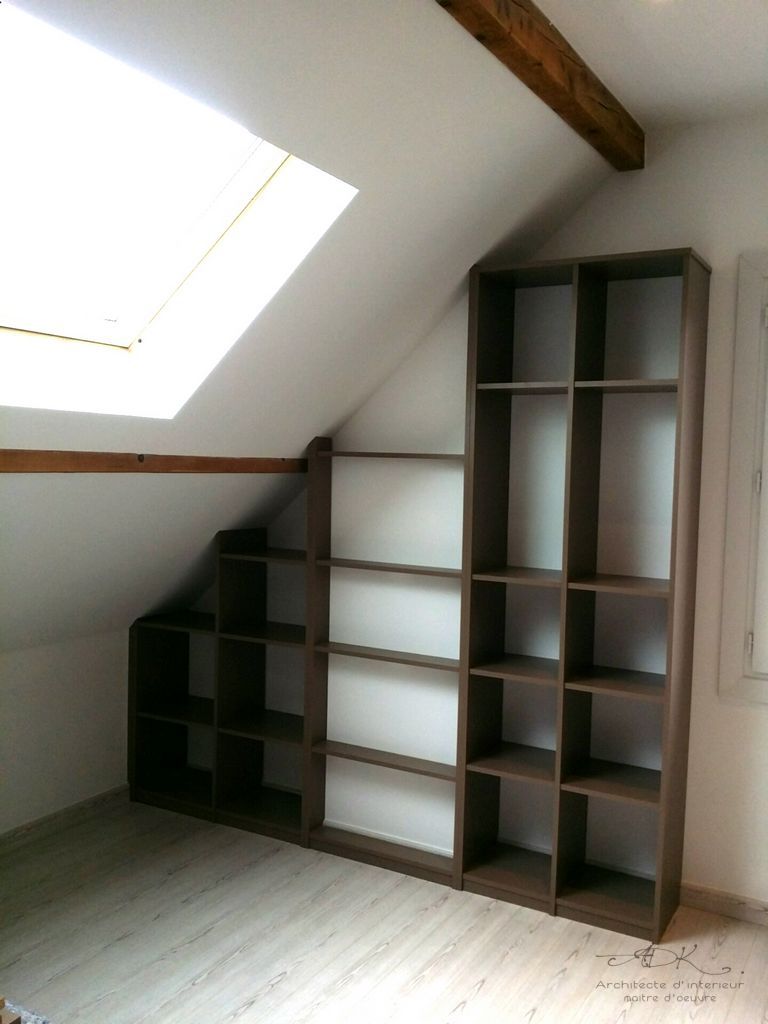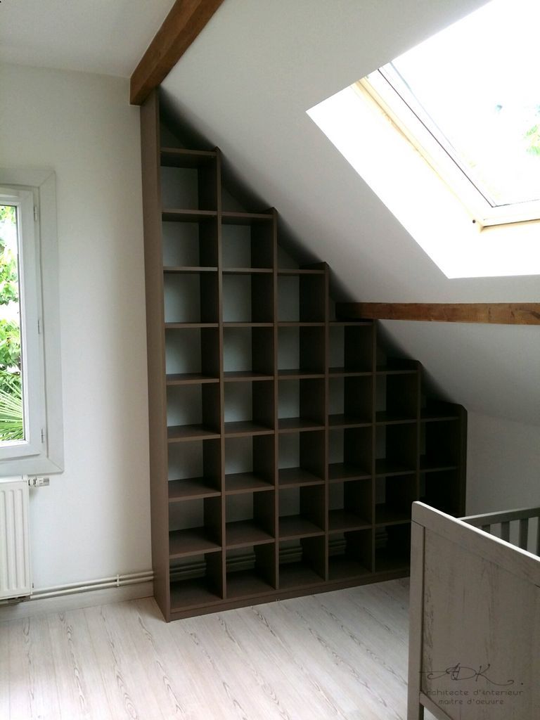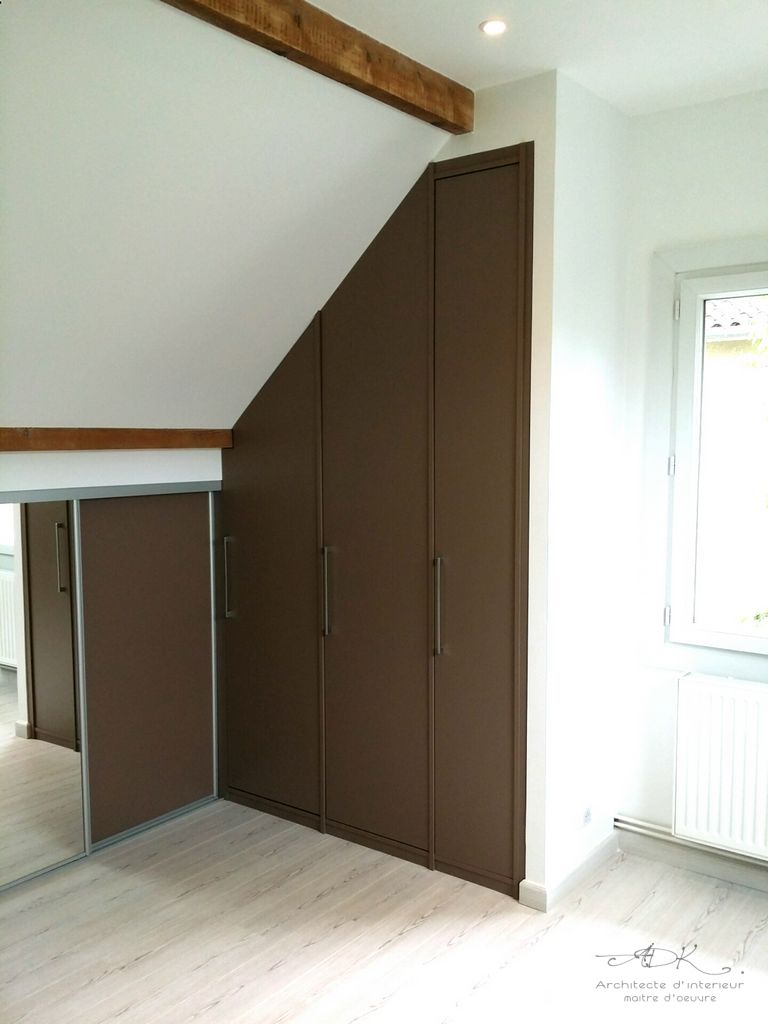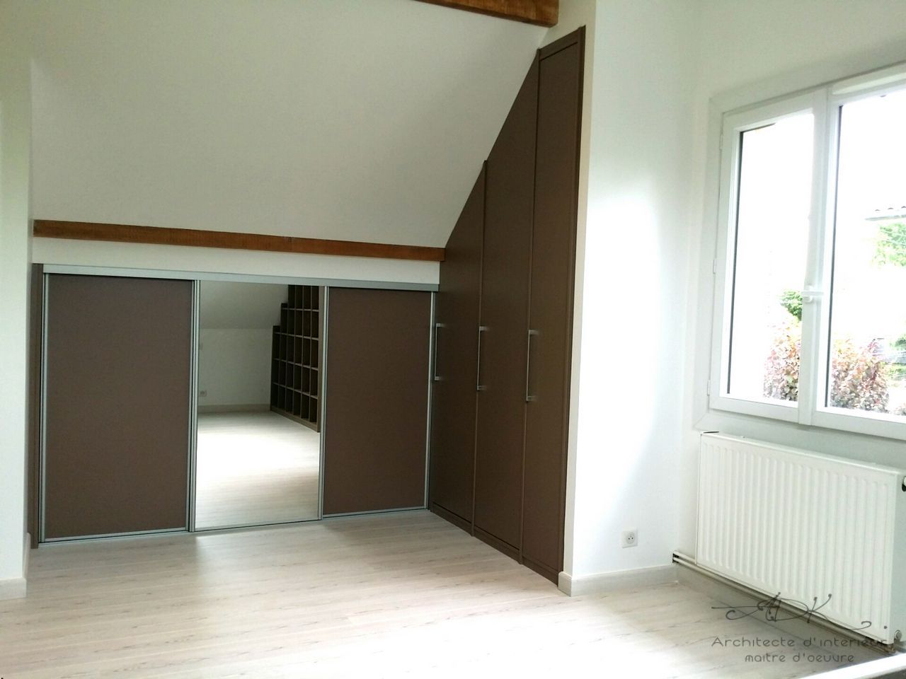 La réponse ADK : les combles étaient déjà composés d’une salle de bain et de deux chambres. ADK a revu l’agencement des chambres pour optimiser l’espace et gagner en mètres carré au sol. Beaucoup de placards et meubles sur-mesure ont été intégrés notamment dans la sous-pente.