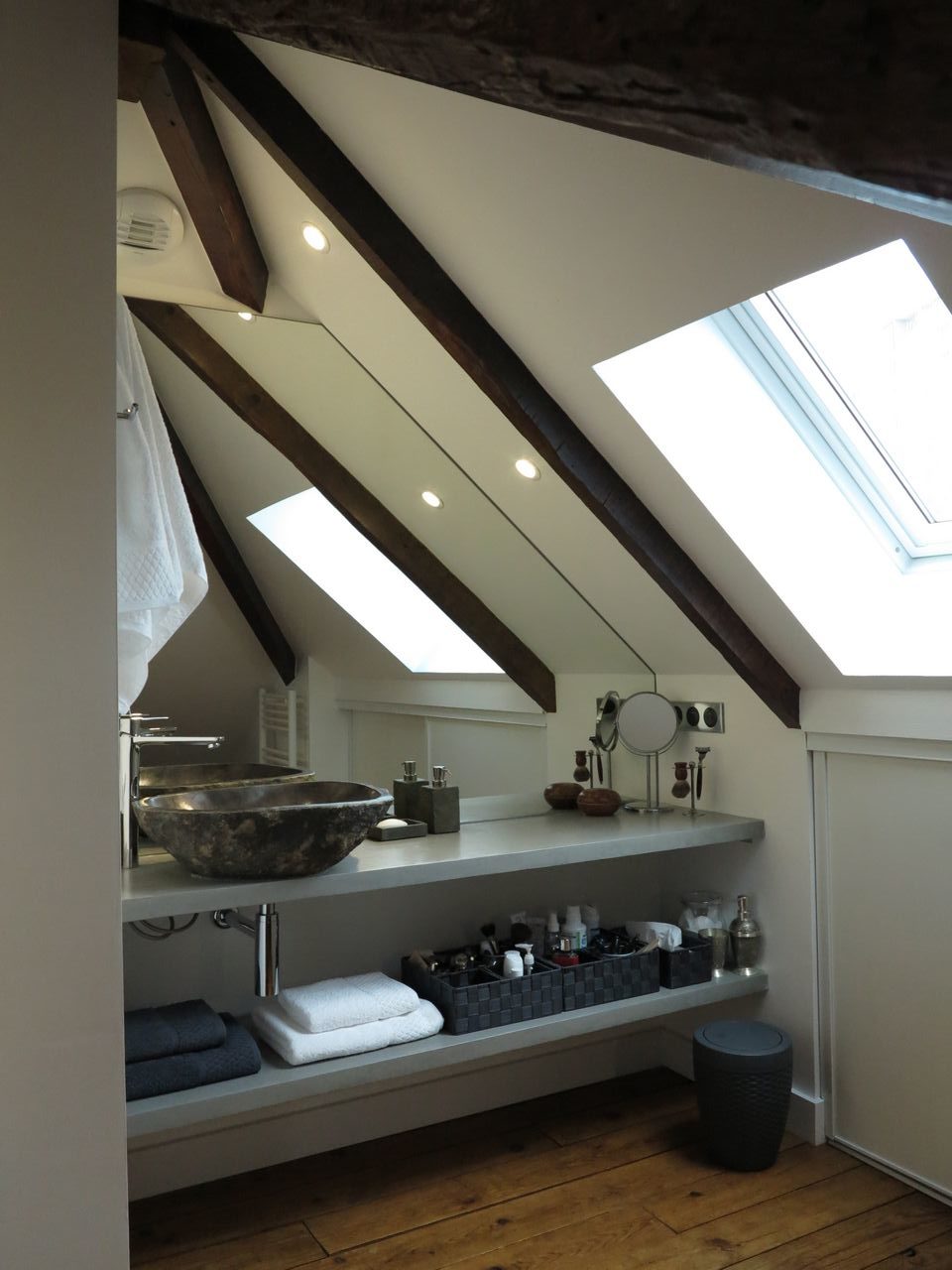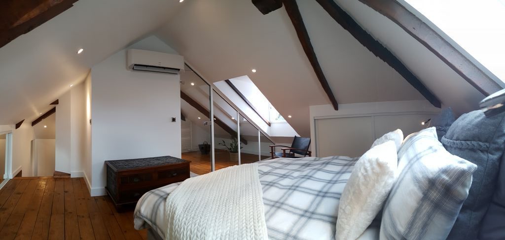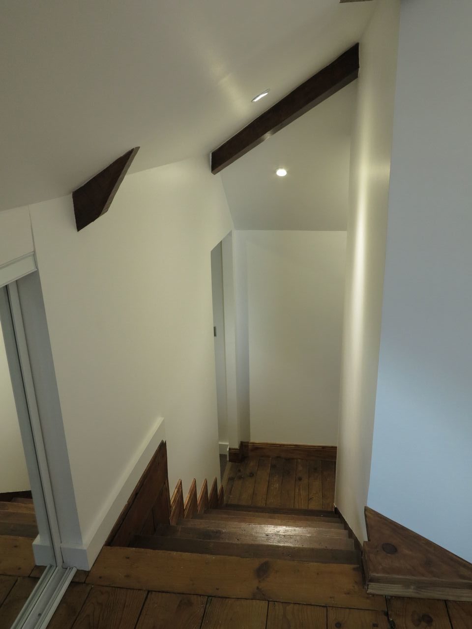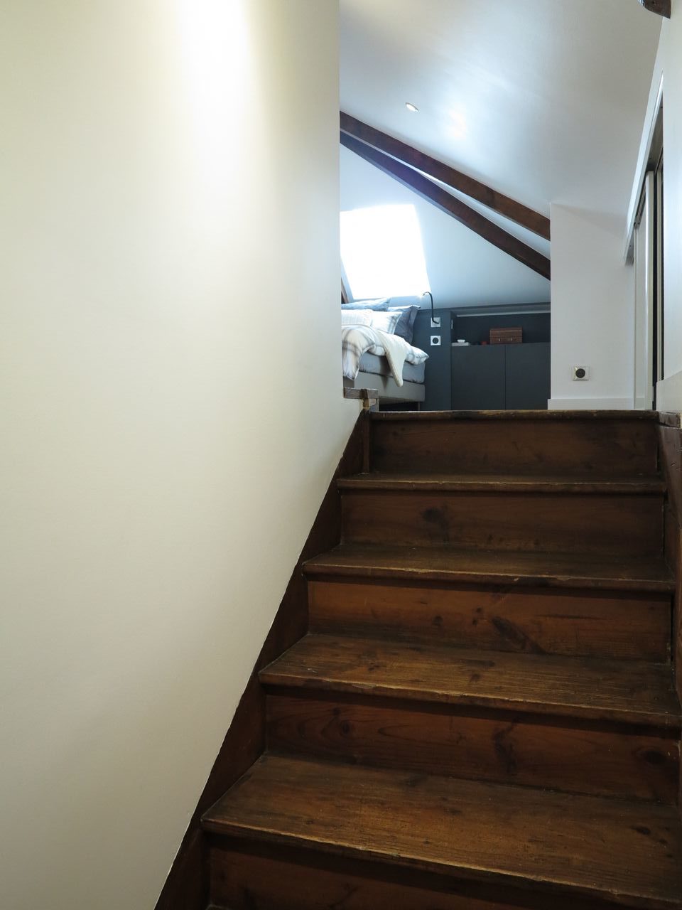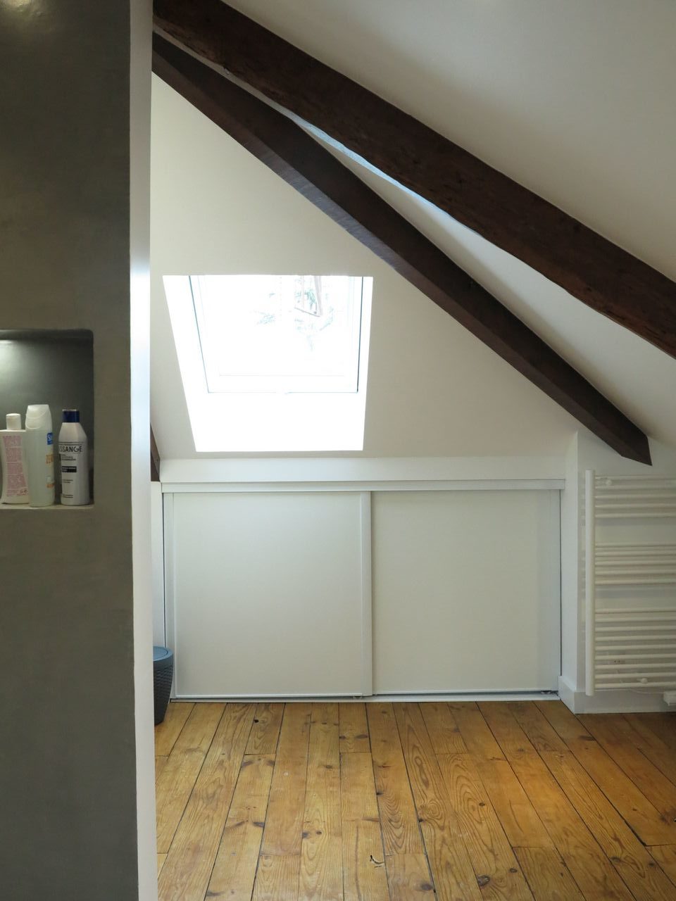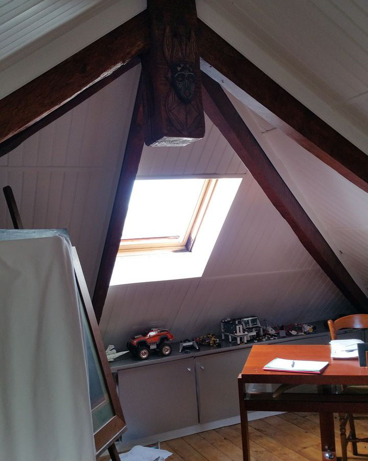 La difficulté : l’ensemble des murs étaient mansardés, aucun n’était de toute hauteur, l’accès été donc compliqué et ADK à dû s’adapter en modifiant l’escalier et recréer l’accès.